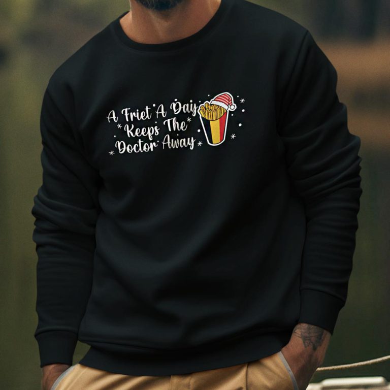 Foute Kersttrui Zwart “A Friet A Day Keeps The Doctor Away"