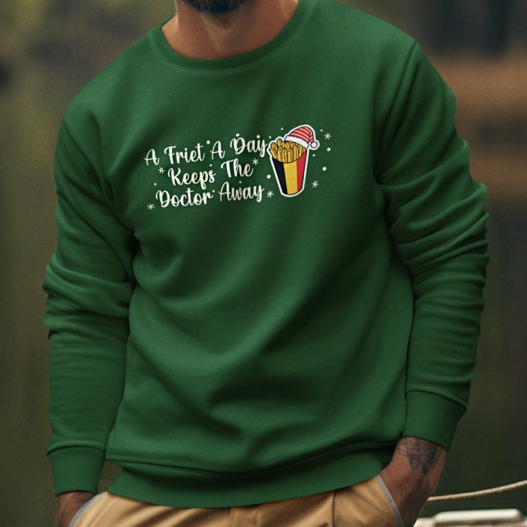 Foute Kerst Hoodie Groen “A Friet A Day Keeps The Doctor Away"