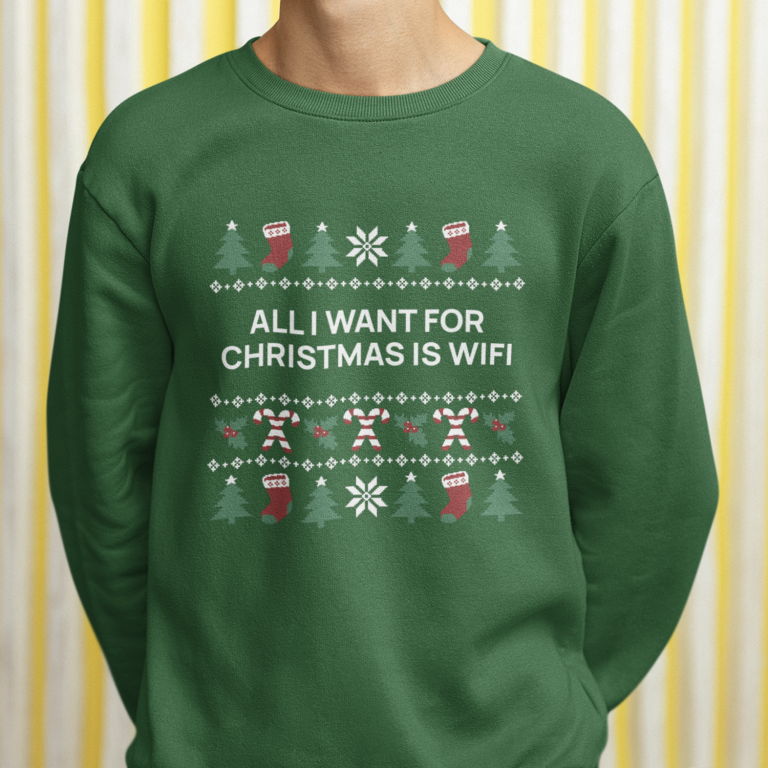 Gen Z Kerst Sweater Groen All I Want For Christmas Is WiFi