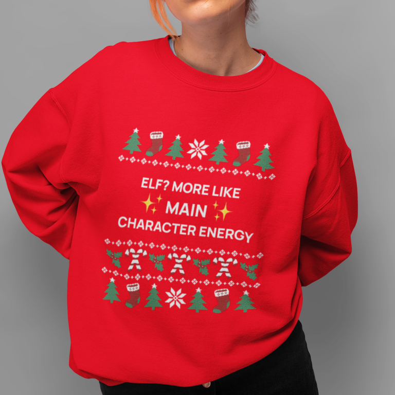 Gen Z Kerst Sweater Rood Elf? More Like Main Character Energy