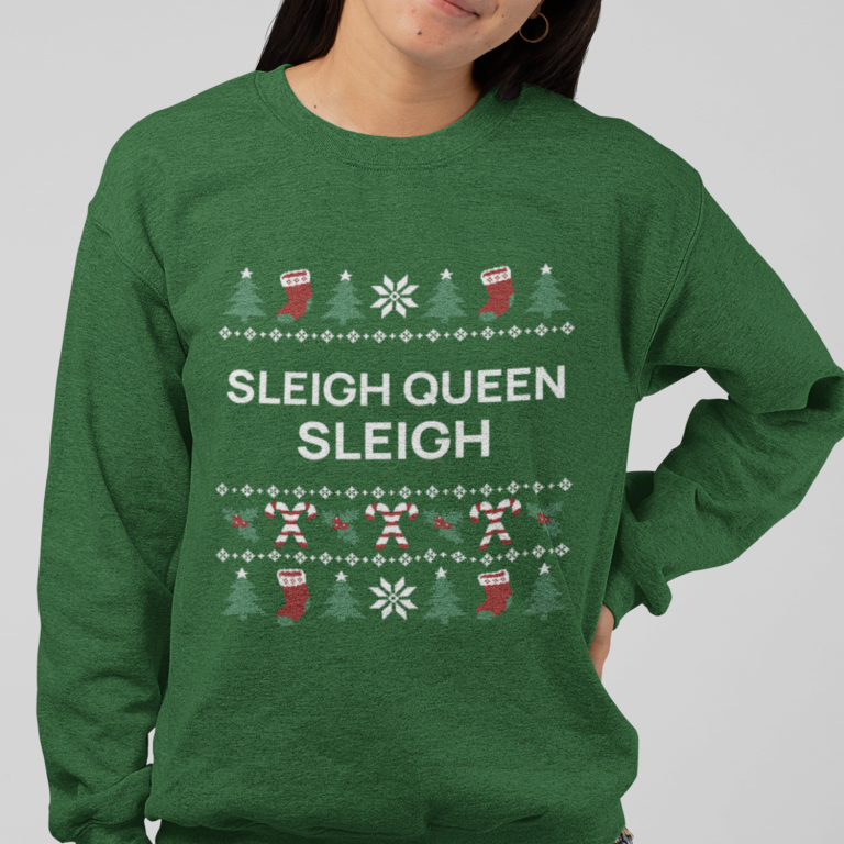 Gen Z Kerst Sweater Groen Sleigh Queen Sleigh