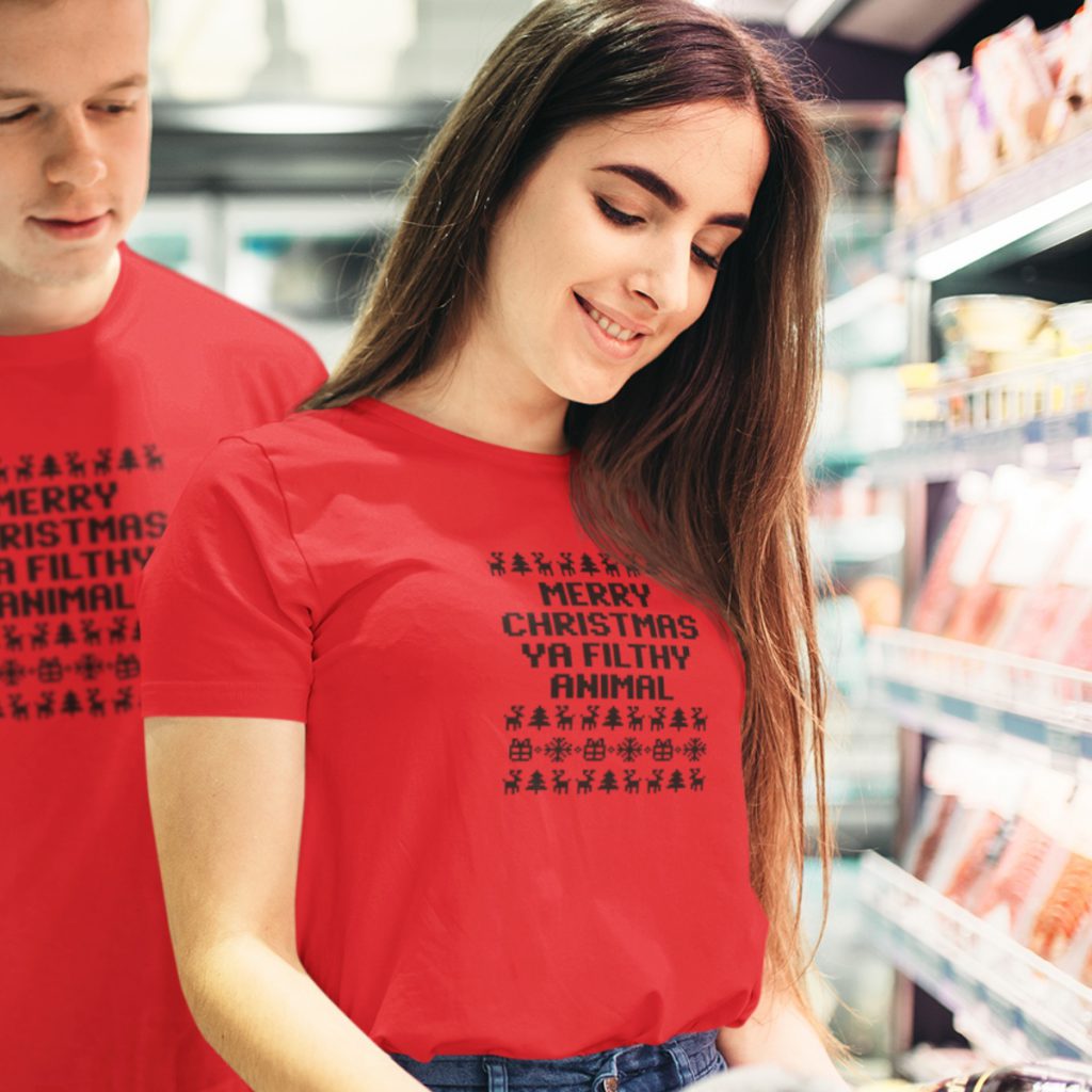 Fout Kerst T-Shirt Rood Merry Christmas Ya Filthy Animal