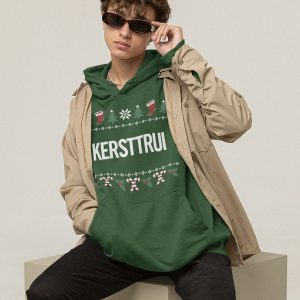 Deze kleurrijke kerst hoodie met de tekst Kersttrui erop, heeft een patroon met verschillende Kerstmis afbeeldingen! Kijk goed en je ziet kerstbomen, kerstsokken, zuurstokken en zelfs hulst afgebeeld in pixelvorm. De comfortabele kerst sweater heeft een uniseks fit, geschikt voor dames en heren. Deze foute kersttrui is leverbaar in maat XS t/m 4XL.