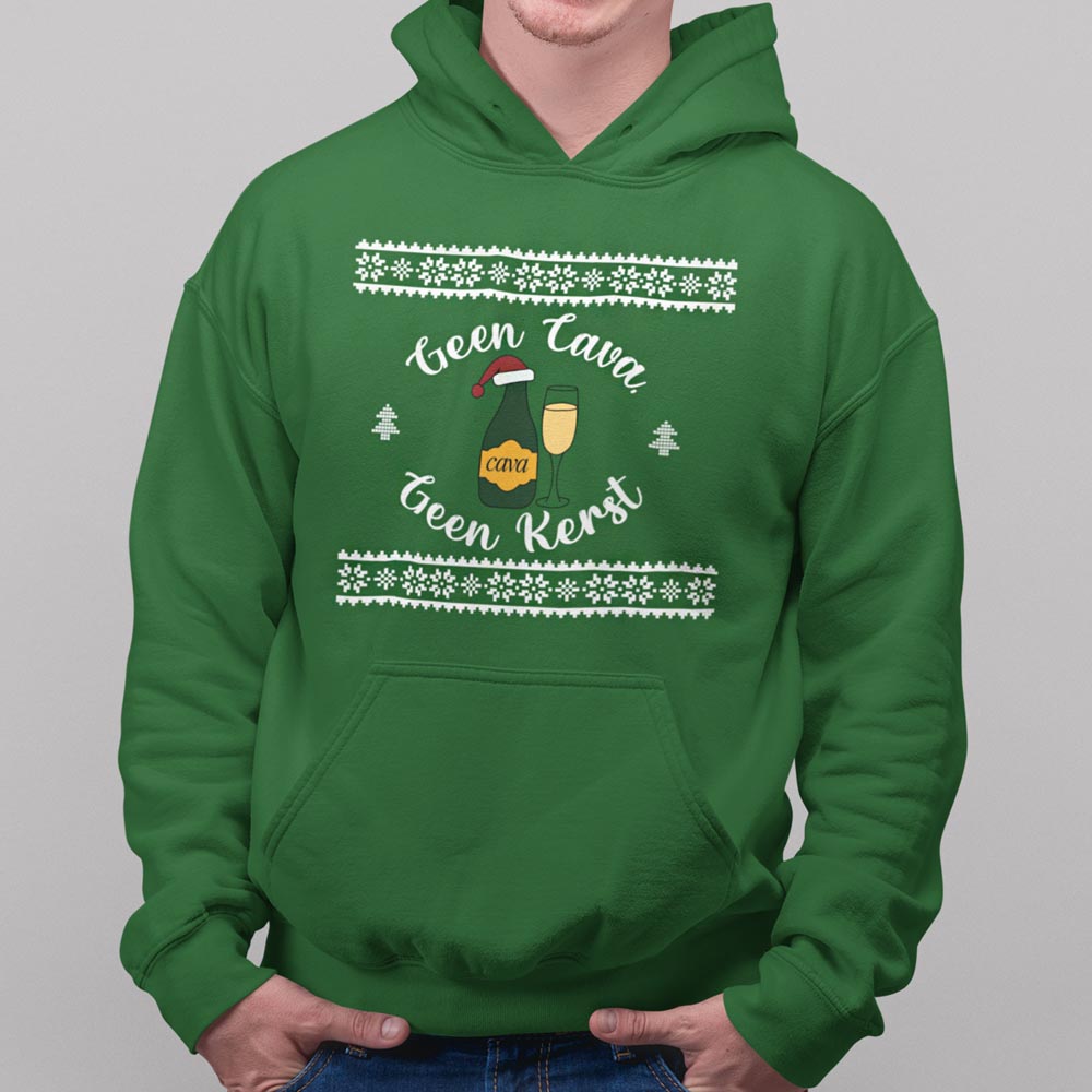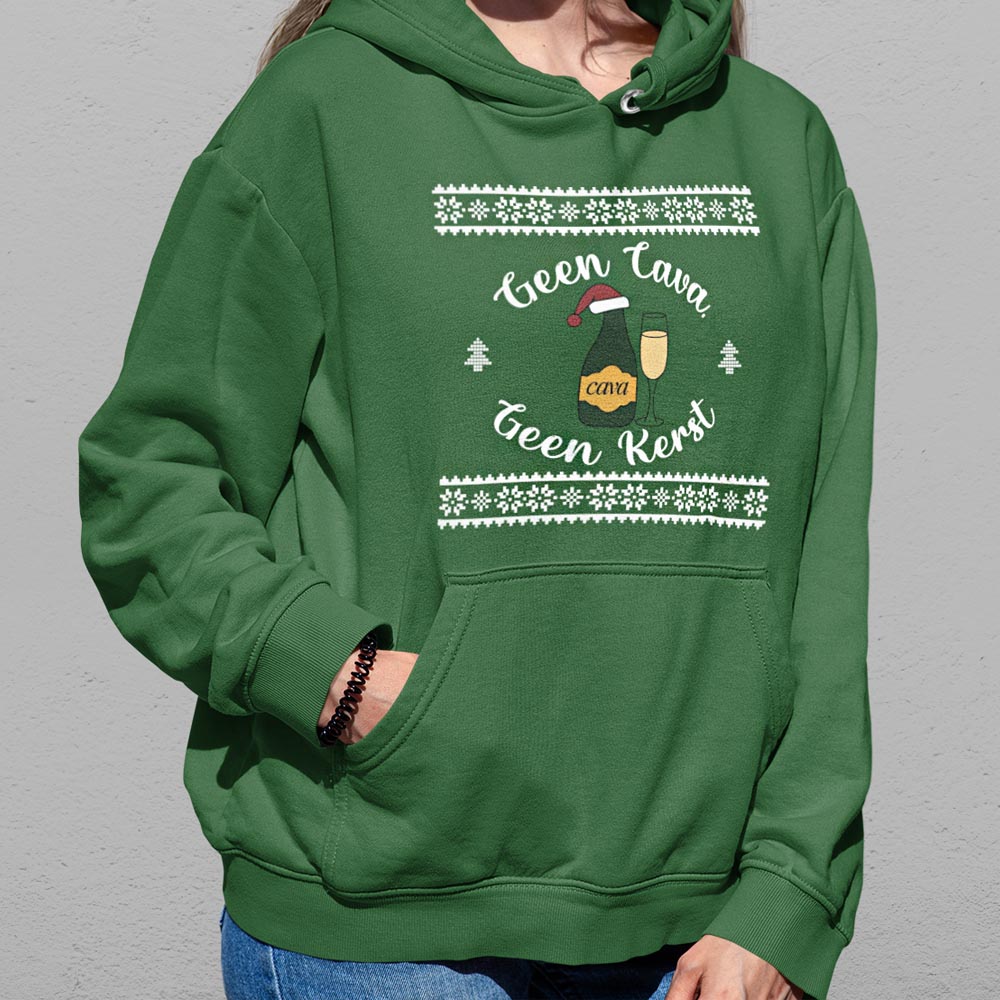 Foute Kerst Hoodie Groen "Geen Cava Geen Kerst"