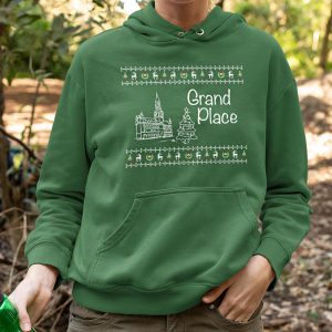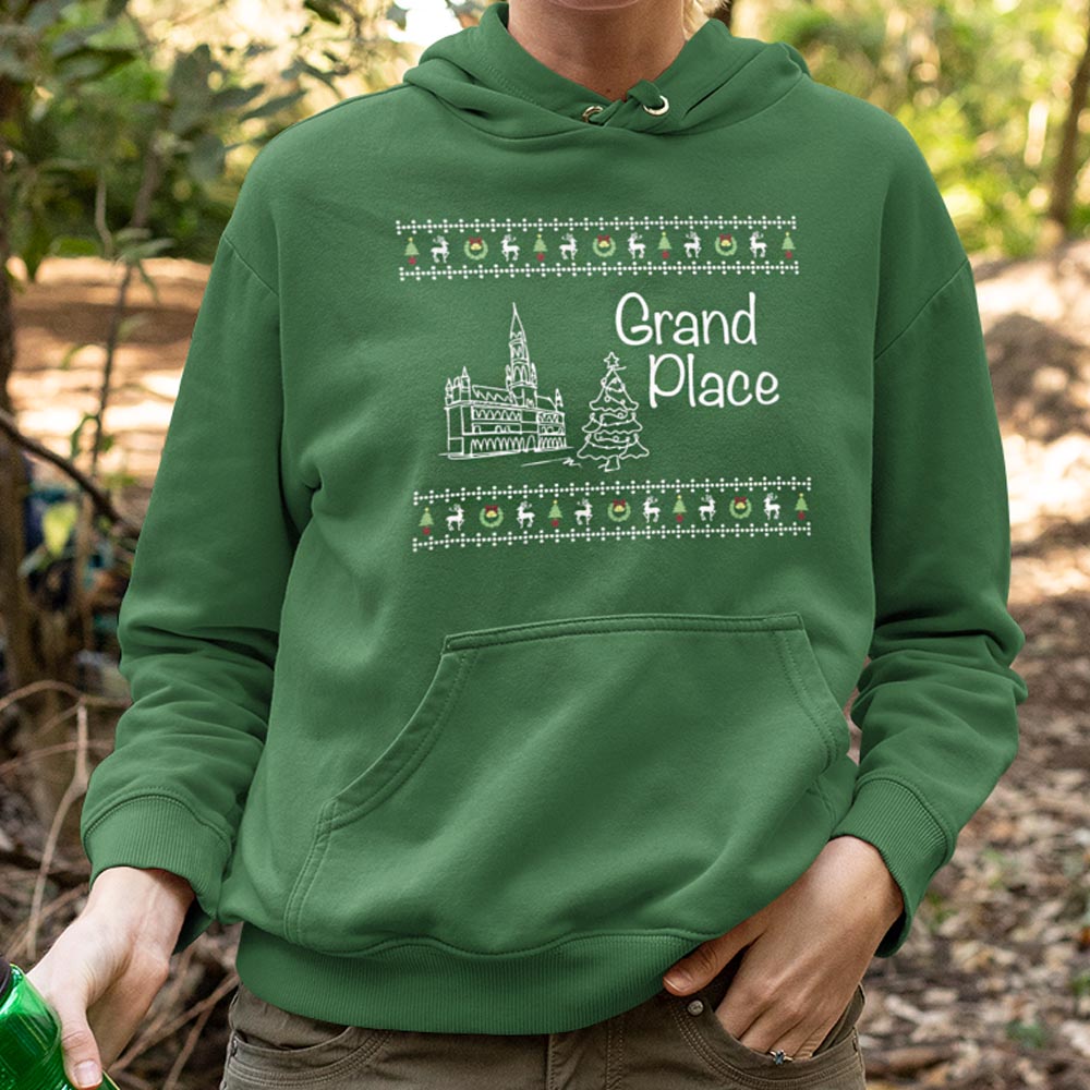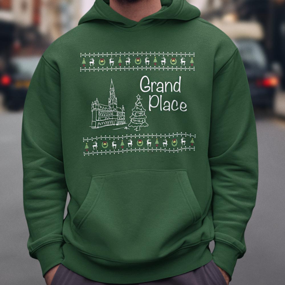 Laat je liefde voor Brussel zien met deze unieke kerst hoodie "Grand Place"! De hoodie toont de betoverende kerstcharme van de beroemde Brusselse Grote Markt in feestelijke stijl. Perfect voor foute kerstfeestjes, wintermarkten of knusse avonden bij de haard. Comfortabel, warm en 100% Belgisch plezier!