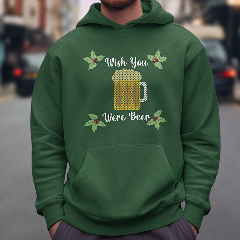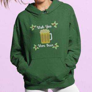 Foute Kerst Hoodie Groen “Wish You Were Beer”
