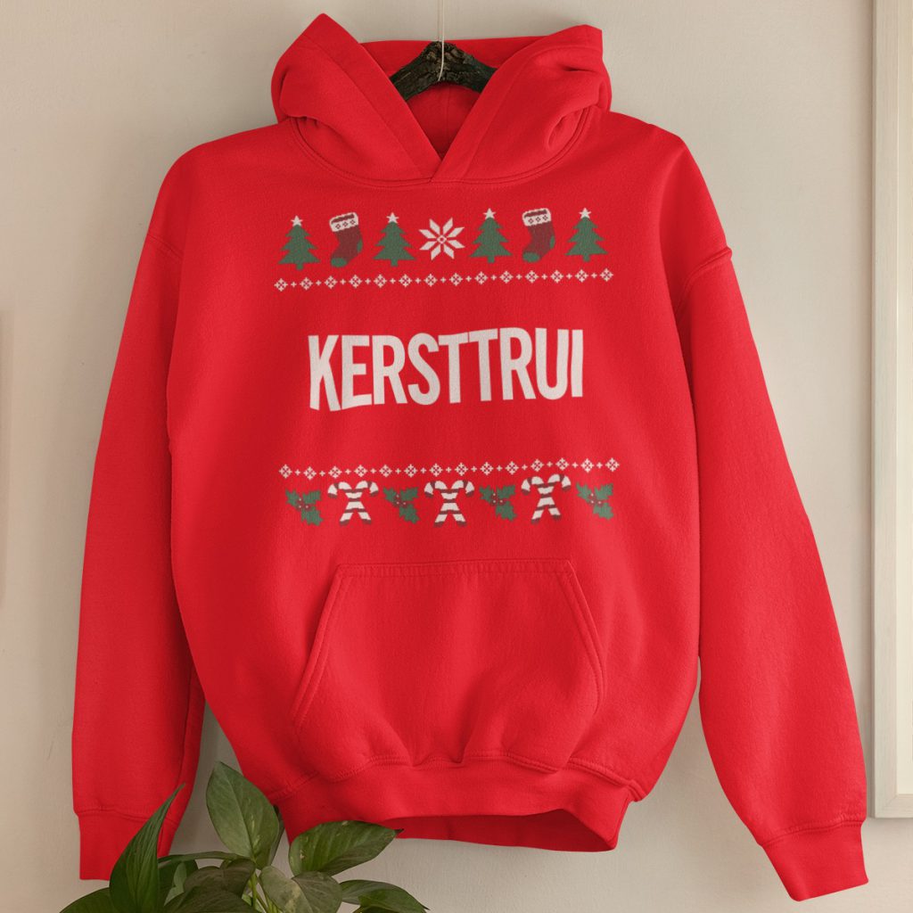 Rode kerst hoodie met tekst en een mooi gekleurd patroon van Kerstmis symbolen! Met deze feestelijke capuchon sweater maak je de hele maand december de blits. De foute kersttrui voelt comfortabel aan en houdt je lekker warm. De uniseks pasvorm is geschikt voor dames en heren. Verkrijgbaar in maat XS t/m 4XL.