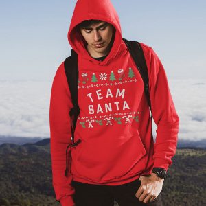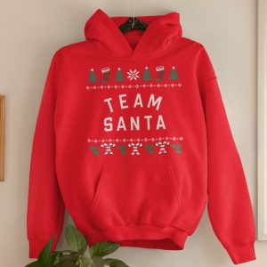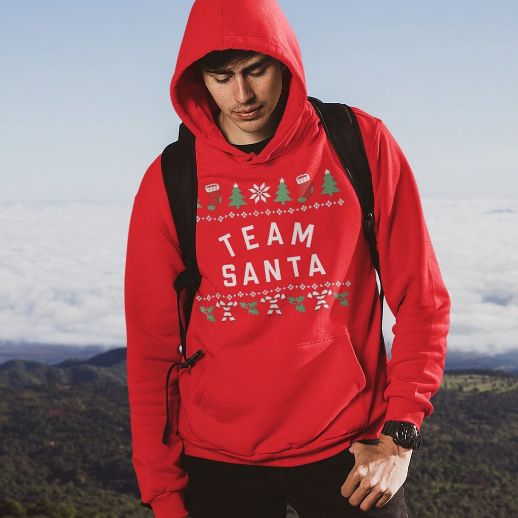 Dit is een rode kerst hoodie met de tekst team Santa en het exclusieve Candy Cane ontwerp dat alleen verkrijgbaar is bij 1001Caps. Draag de feestelijke capuchon sweater op het werk of naar school en fleur je hele omgeving op! De foute kersttrui voelt comfortabel aan en is ideaal voor die koude kerstdagen. Geschikt voor dames en heren, verkrijgbaar in maat XS t/m 4XL.