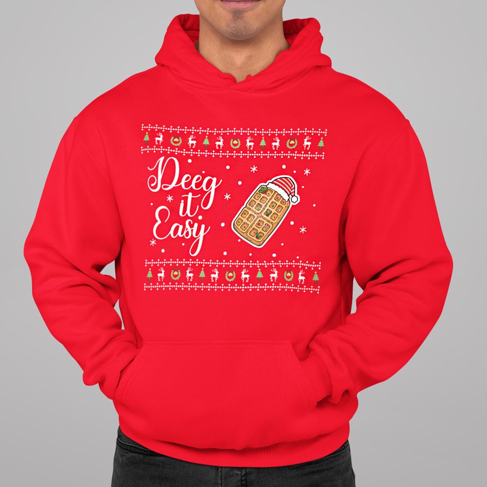 Foute Kerst Hoodie Rood “Deeg It Easy"