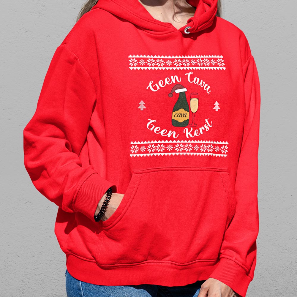 Foute Kerst Hoodie Rood "Geen Cava Geen Kerst"