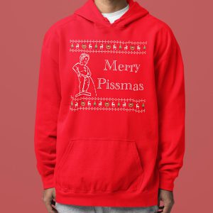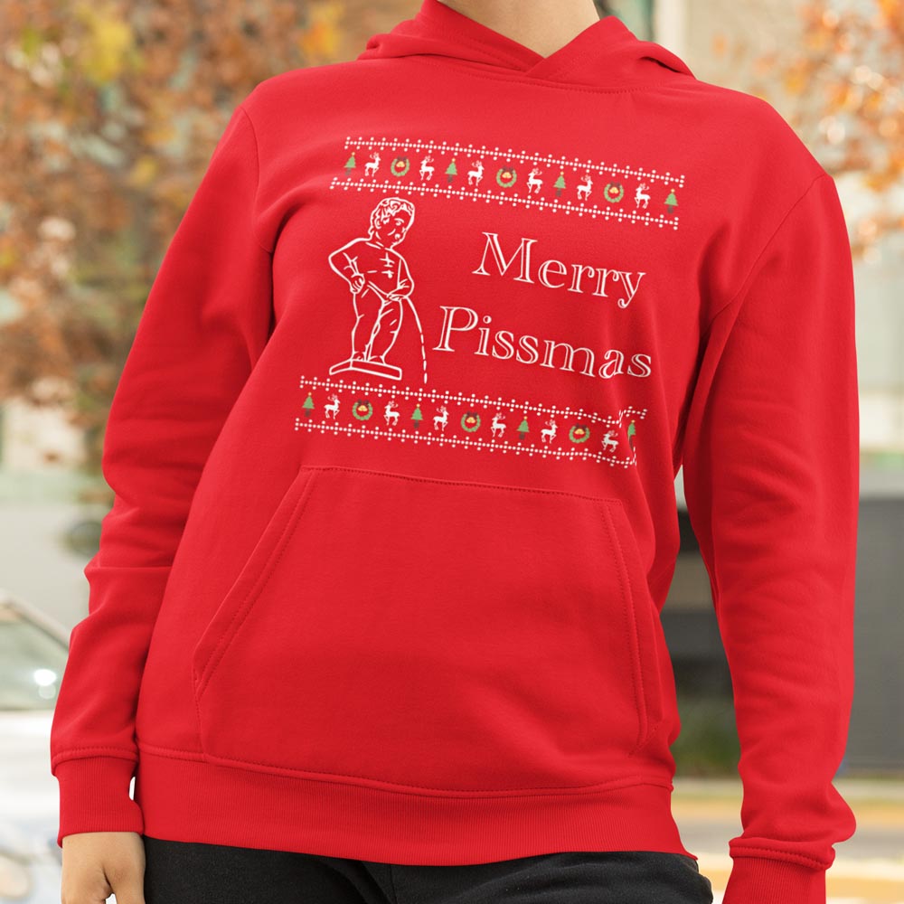 Foute Kerst Hoodie Rood “Merry Pissmas"