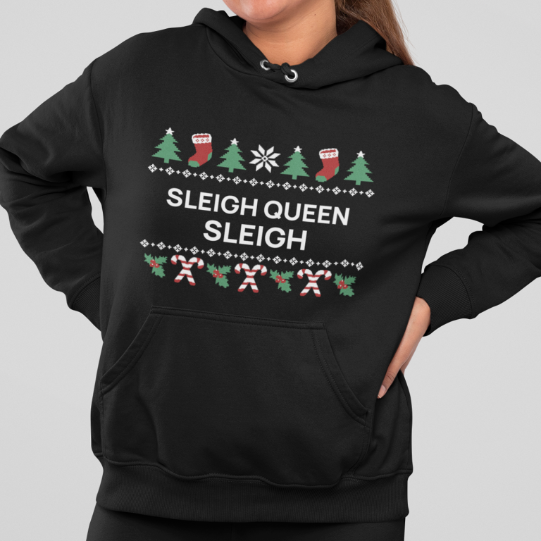 Gen Z Kerst Hoodie Zwart Sleigh Queen Sleigh