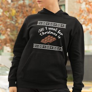 Foute Kerst Hoodie Zwart All I Want For Christmas Is Chocola