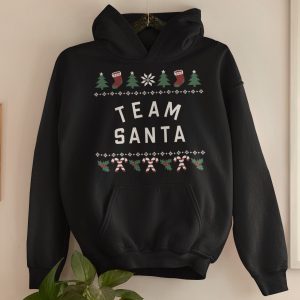 Deze zwarte kerst hoodie met Team Santa heeft het unieke Candy Cane design dat je alleen bij 1001Caps vindt! De kerstsweater heeft een uniseks fit en is geschikt voor dames en heren. In het exclusieve ontwerp vind je kerstbomen, zuurstokken, sneeuwvlokken en kerstsokken. Ofwel, alles om er deze Kerstmis een echt knalfeest van te maken! Verkrijgbaar in XS t/m 5XL.