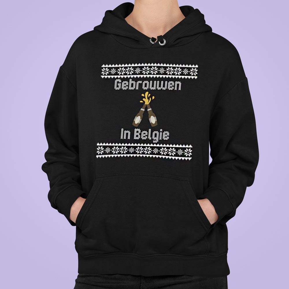 Foute Kerst Hoodie Zwart "gebrouwen in belgie"
