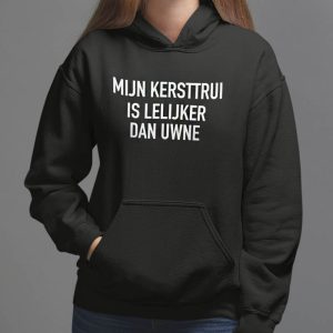 De foute kersttrui Mijn kerst Hoodie is lelijker dan uwne is dé blikvanger van elk kerstfeest. Heerlijk zacht, warm en vol kerstsfeer, precies zoals een échte lelijke kersttrui hoort te zijn. Ideaal voor foute kerstfeestjes, familie-etentjes of als ludiek cadeau voor vrienden. Draag hem met trots en bewijs dat jouw trui écht de lelijkste is!