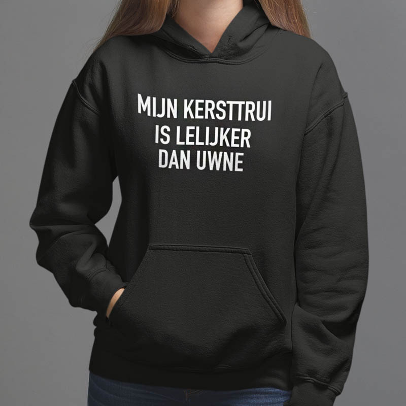 Foute Kerst Hoodie Zwart "Mijn Kersttrui Is Lelijker Dan Uwne"