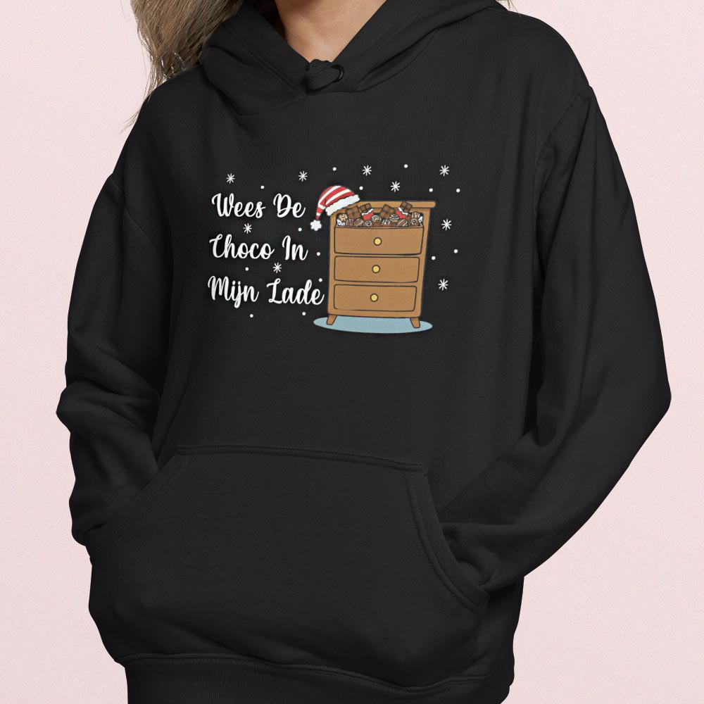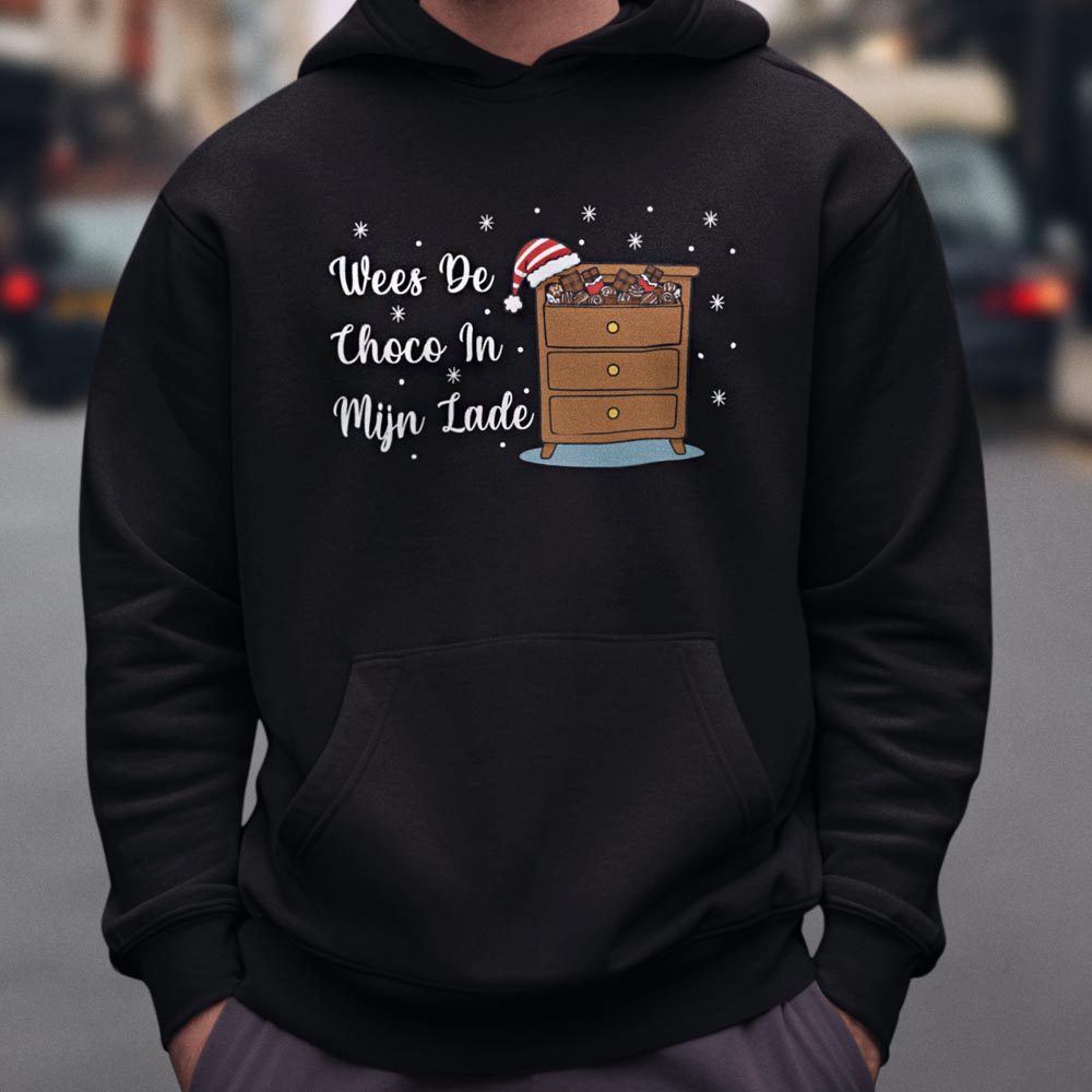 Foute Kerst Hoodie Zwart “Wees De Choco In Mijn Lade"