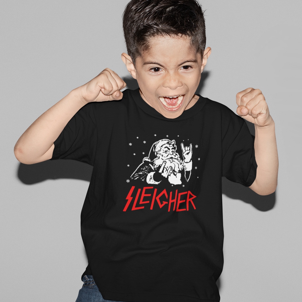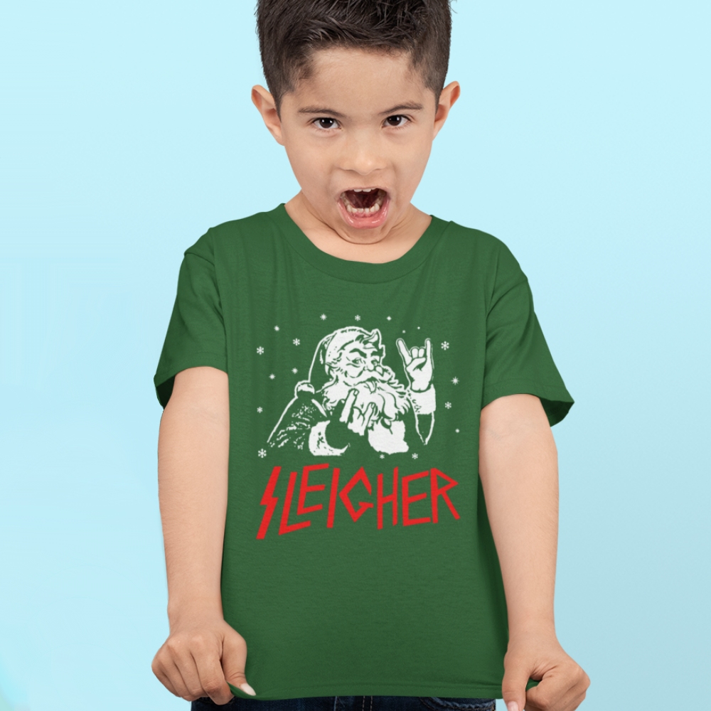 Met een kleine knipoog naar de bekende metalband is dit het foute kerst t-shirt voor alle metalfans en hun stoere kids! Jullie krijgen de leukste reacties wanneer je samen in dit t-shirt verschijnt tijdens het kerstdiner bij opa en oma. Verkrijgbaar in groen en zwart. Verkrijgbaar voor stoere jongens en meisjes van 1 t/m 14 jaar. Voor de perfecte fit, bekijk de maattabel onderaan de pagina.