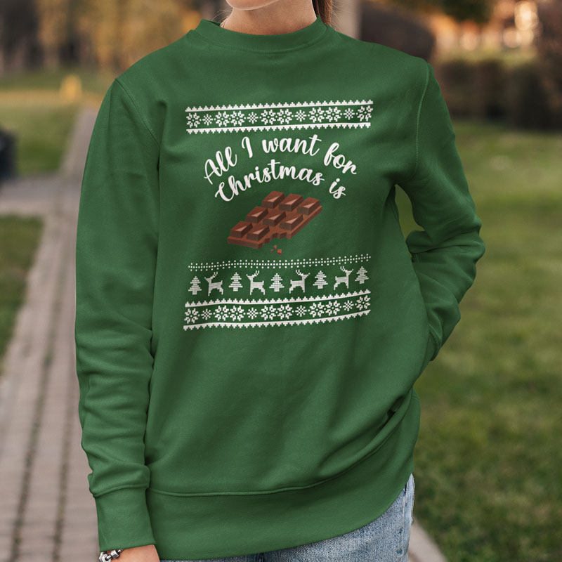 Foute Kersttrui Groen All I Want For Christmas Is Chocola