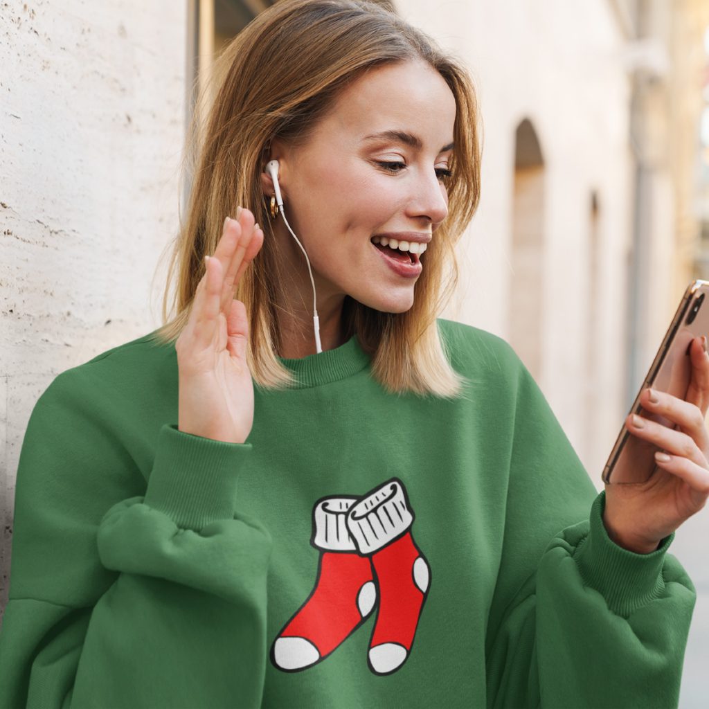 Vier de feestdagen met deze comfortabele, groene kersttrui met Christmas Socks in cartooneske stijl. Als je droge humor hebt dan is dit de perfecte kersttrui om naar feestjes en kerst borrels te dragen. Door de uniseks pasvorm is de kleding geschikt voor zowel dames als heren. Verkrijgbaar in de maten XS t/m 4XL.