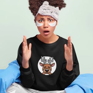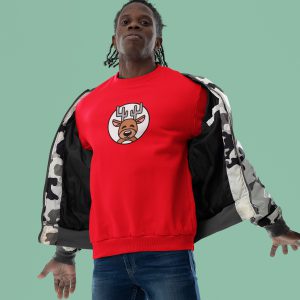 Niet echt fout, deze vrolijke kersttrui met Rendier Rudolf in full color print op de borst. Fijne, comfortabele sweater voor de koude dagen rondom kerst. Stiekem draag je hem het liefst de hele winter. Deze uniseks sweater is verkrijgbaar voor dames en heren in de kleuren zwart, rood en groen. Met keuze uit de maten XS t/m 5XL is er altijd wel eentje bij die past. Check de maattabel onderaan de pagina voor de juiste maat.