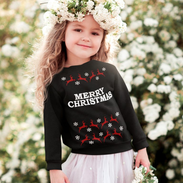 Kersttrui Kind Zwart Merry Christmas Rendier