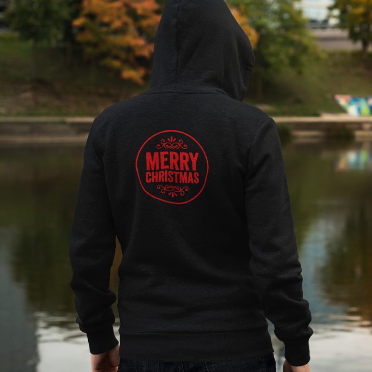 Zwarte Kerst Hoodie Premium Merry Christmas 2 Back