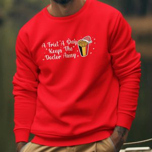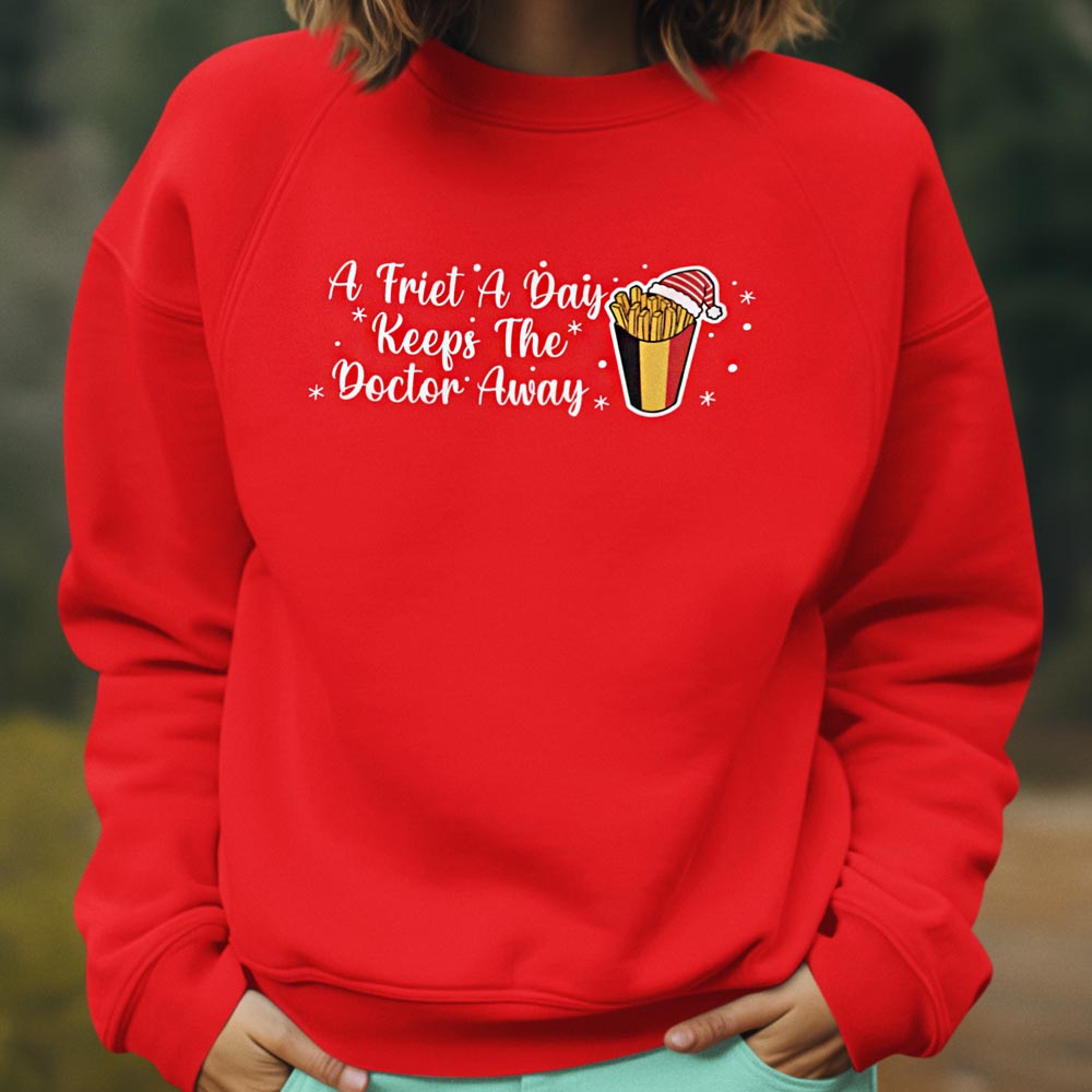 Foute Kersttrui Rood “A Friet A Day Keeps The Doctor Away"