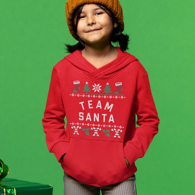 Kerst Hoodie Kind Rood Candy Cane Team Santa