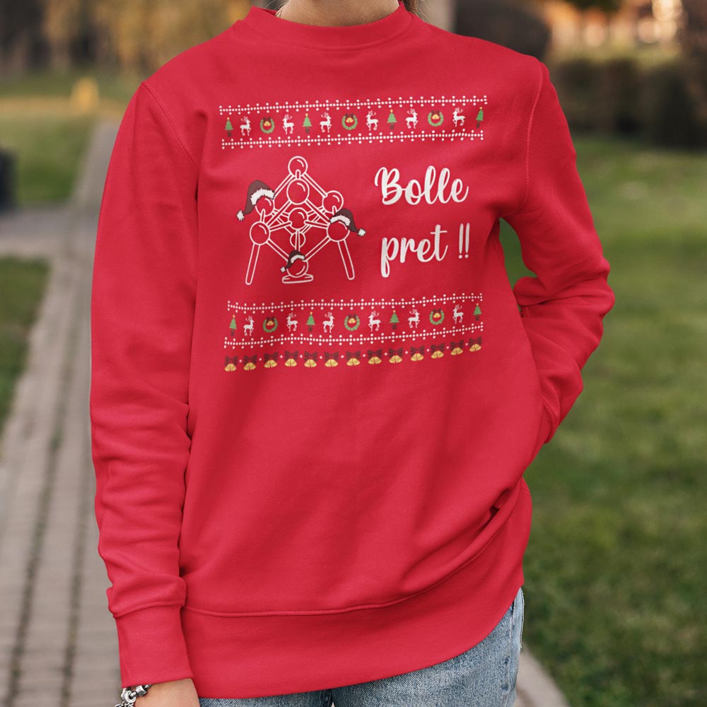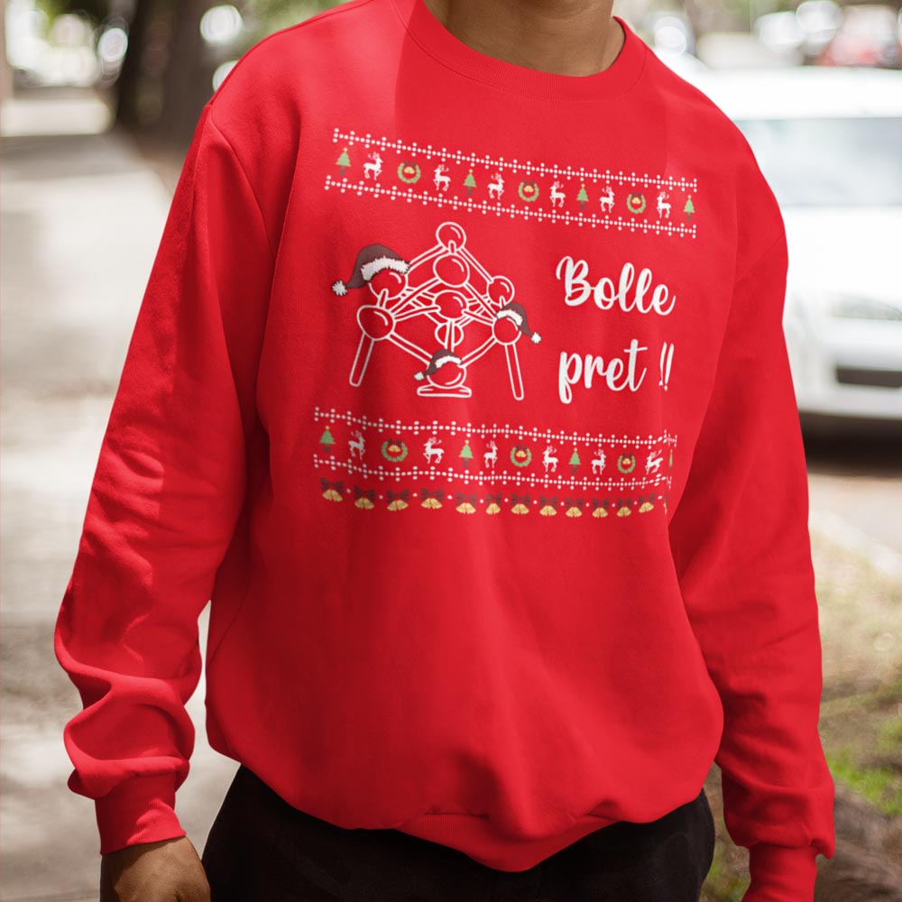Breng wat Belgische humor in je kerstoutfit met deze gezellige kersttrui "Bolle Pret!". De trui toont het beroemde Atomium in feestelijke kerststijl, ideaal voor foute kerstfeestjes, familiediners of gewoon een warme winterdag. Comfortabel, zacht en 100% feestproof!