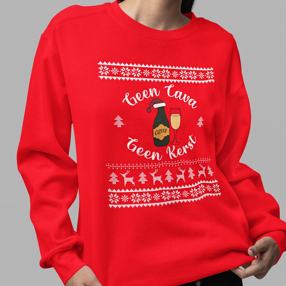 Foute Kersttrui Rood "Geen Cava Geen Kerst"