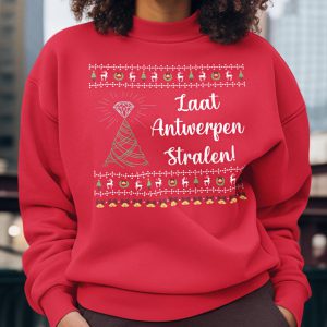 Laat deze kerst extra schitteren met de trui "Laat Antwerpen Stralen"! Geïnspireerd door de wereldberoemde diamantenhandel van Antwerpen, combineert deze kersttrui humor, trots en een vleugje luxe. Perfect voor foute kerstfeestjes of gezellige winterdagen vol fonkelende sfeer. Comfortabel, warm en sprankelend als een diamant!