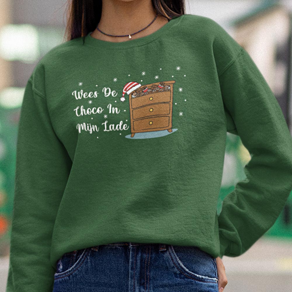 Foute Kersttrui Groen “Wees De Choco In Mijn Lade"