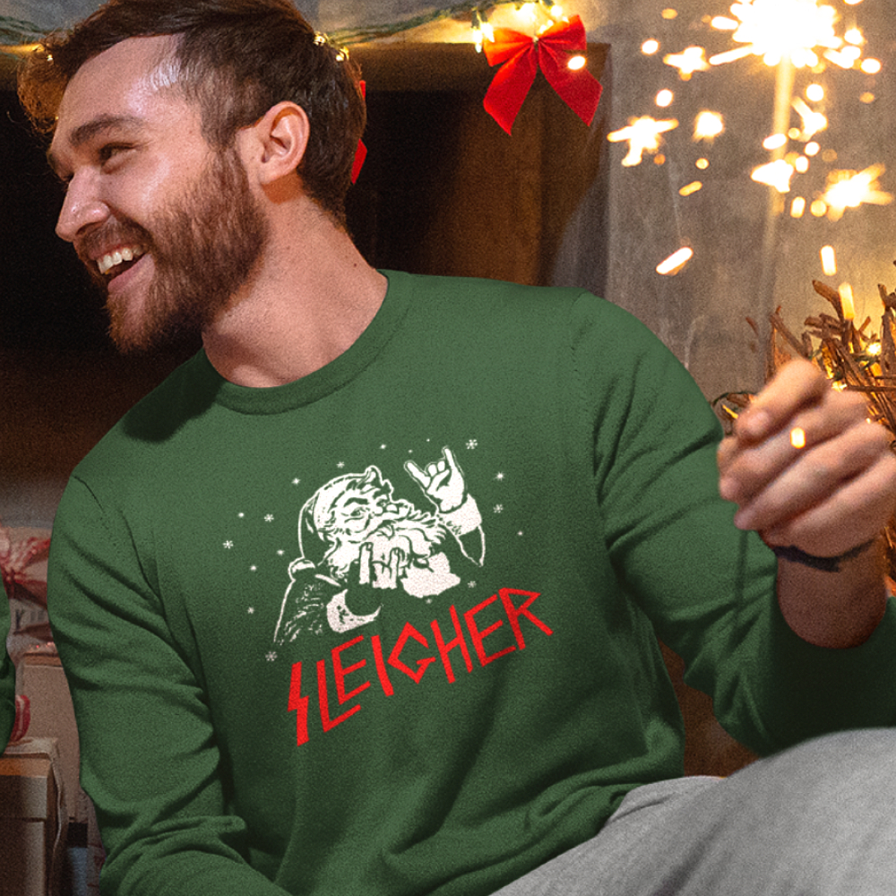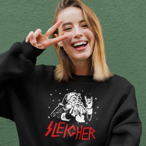 Deze foute kersttrui met Sleigher en de kerstman is verkrijgbaar in de maten XS t/m 5XL. Daarnaast heeft het een uniseks fit die zowel dames als heren heerlijk zit. Vooral metal- en rockfans kunnen deze sweater waarderen. Maak deze Kerstmis indruk op al je vrienden met deze fantastische kersttrui!