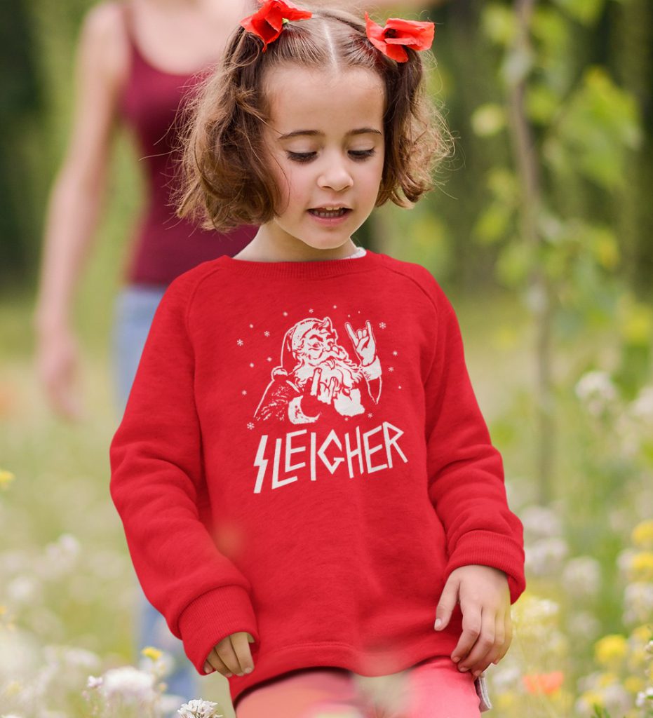 Voor de grootste kleine fans van metal en rock muziek, deze stoere rode sweater met print Sleigher Santa. Houdt jouw dochter of zoon ook wel van stoere rock muziek? Dan hoef je niet verder te zoeken voor de juiste foute kerstsweater. Op foutekerstsweater.be vindt je de grootste unieke collectie kerstsweaters van dit moment. Bekijk de maattabel onderaan de pagina voor de juiste maat.