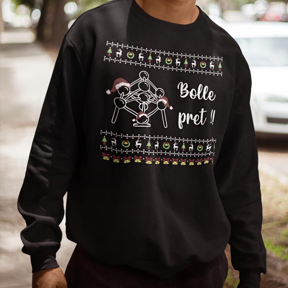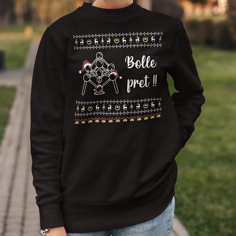 Breng wat Belgische humor in je kerstoutfit met deze gezellige kersttrui "Bolle Pret!". De trui toont het beroemde Atomium in feestelijke kerststijl, ideaal voor foute kerstfeestjes, familiediners of gewoon een warme winterdag. Comfortabel, zacht en 100% feestproof!