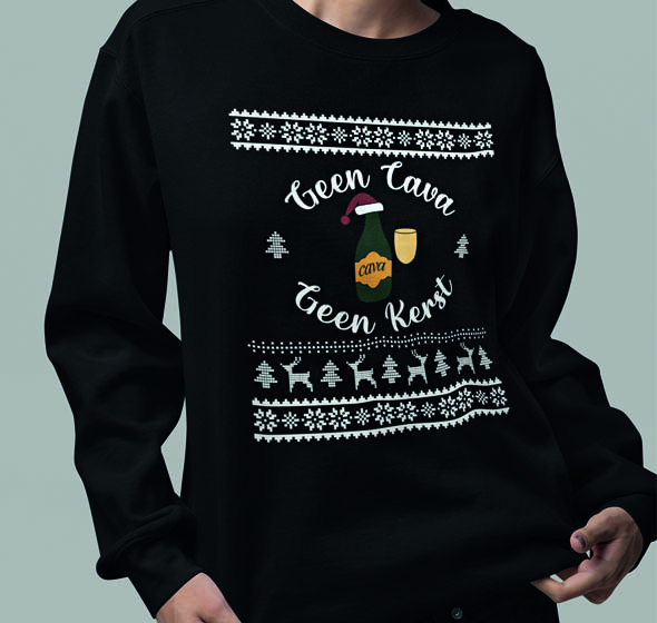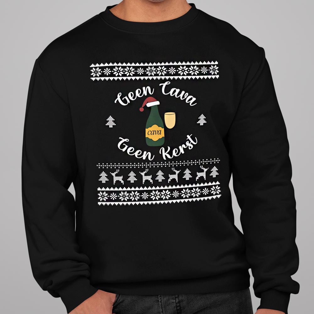 Foute Kersttrui Zwart "Geen Cava Geen Kerst"