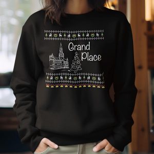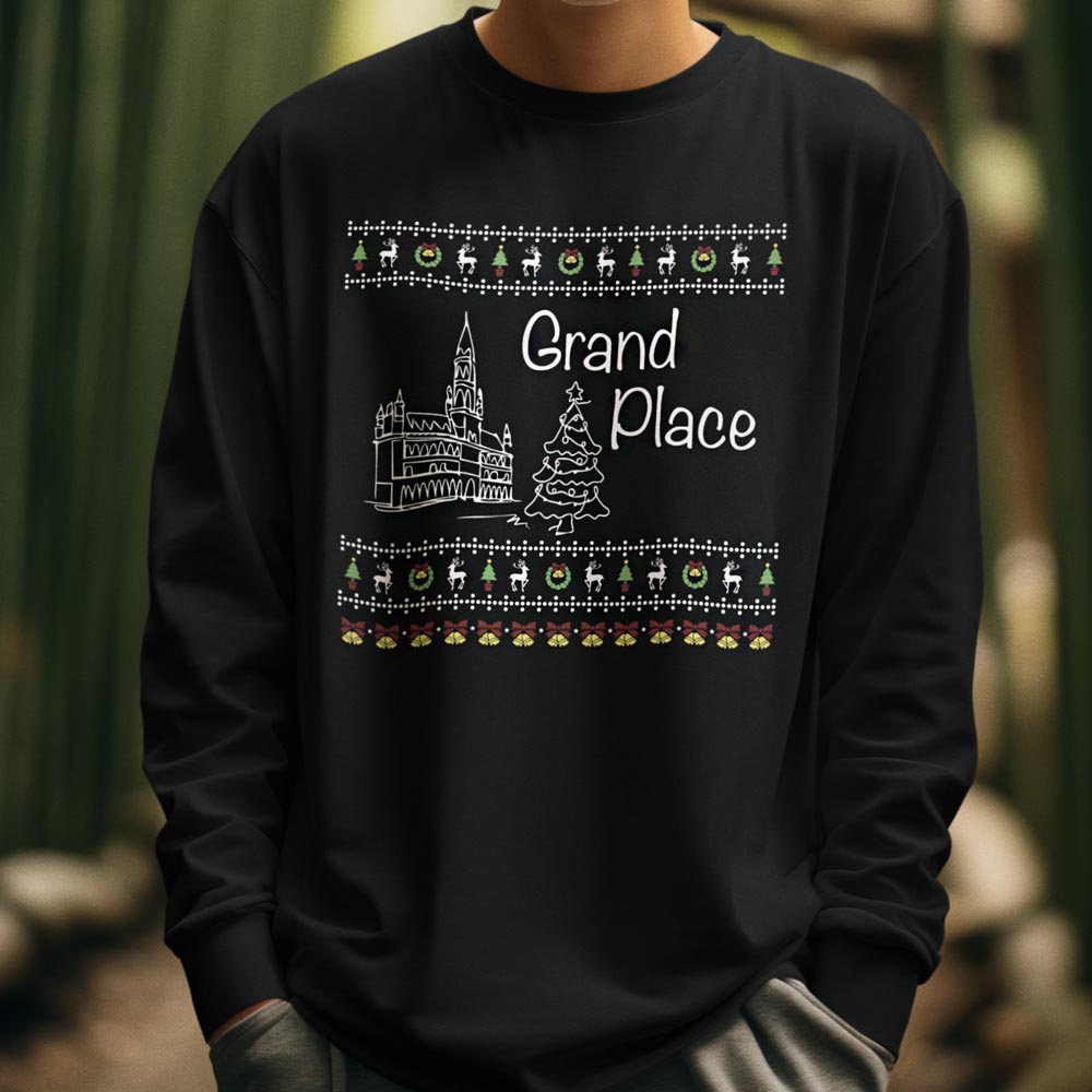 Laat je liefde voor Brussel zien met deze unieke kersttrui "Grand Place"! De trui toont de betoverende kerstcharme van de beroemde Brusselse Grote Markt in feestelijke stijl. Perfect voor foute kerstfeestjes, wintermarkten of knusse avonden bij de haard. Comfortabel, warm en 100% Belgisch plezier!