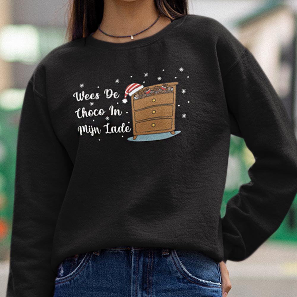 Foute Kersttrui Zwart “Wees De Choco In Mijn Lade"