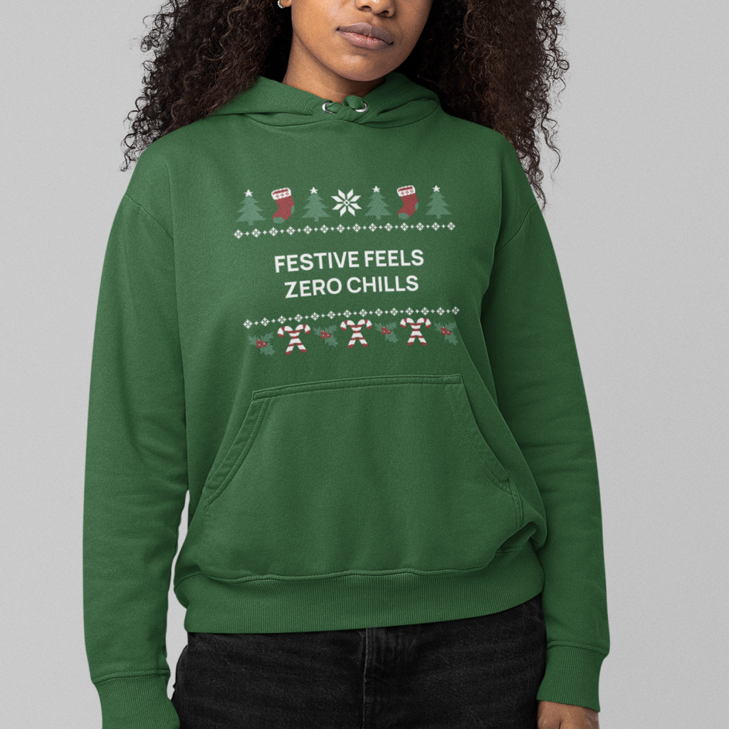 Gen Z Kerst Hoodie Groen Festive Feels Zero Chills