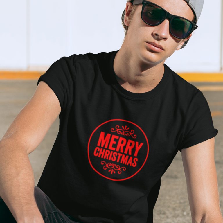 Kerst T-Shirt Zwart Premium Merry Christmas Round