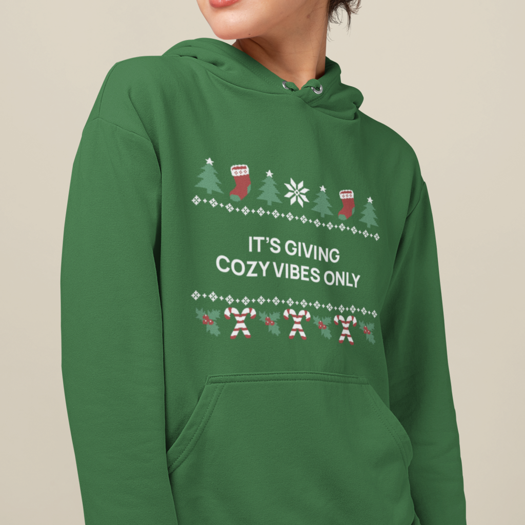 Gen Z Kerst Hoodie Groen It's Giving Cozy Vibes Only