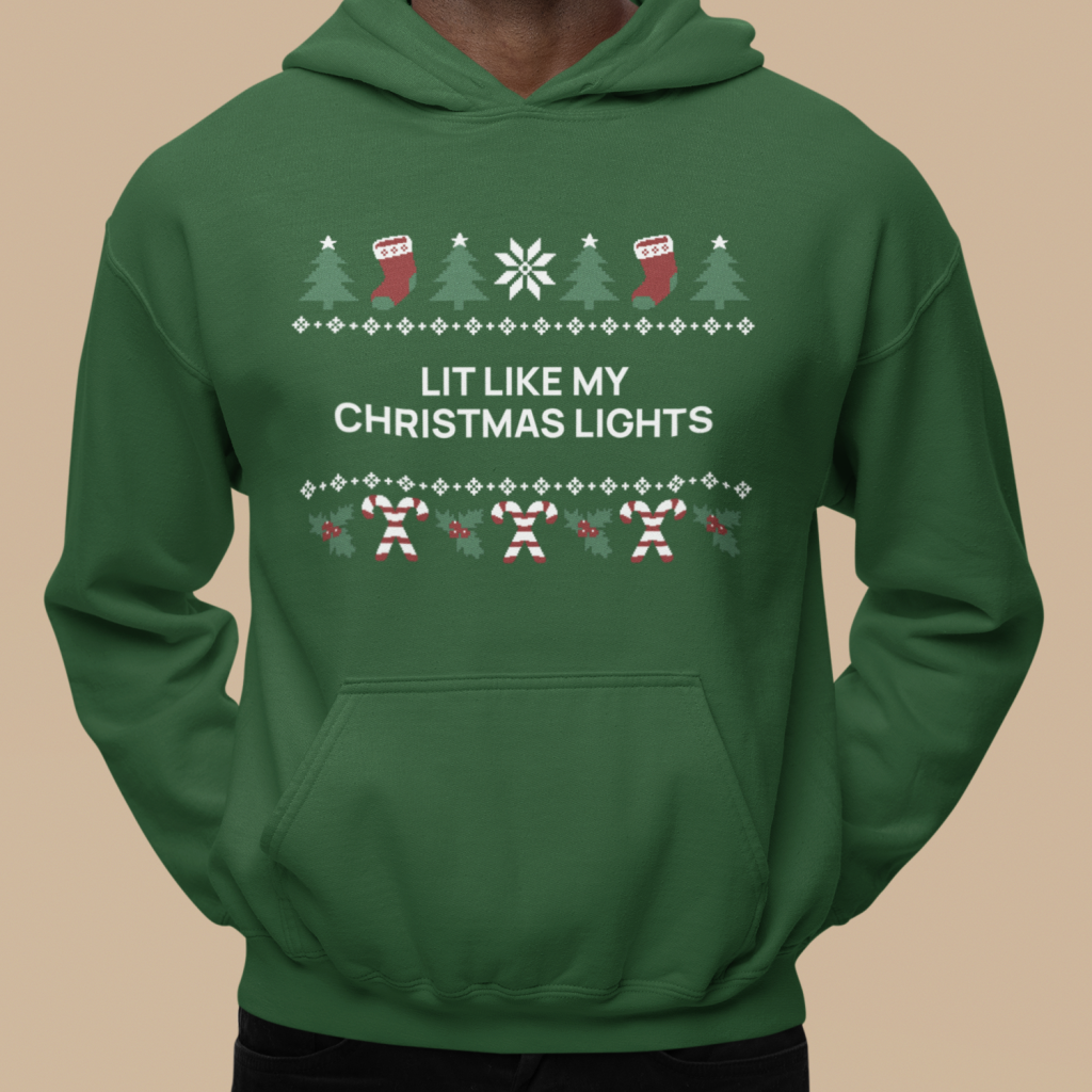 Gen Z Kerst Hoodie Groen Lit Like My Christmas Lights