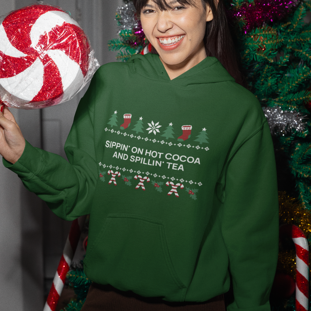 Gen Z Kerst Hoodie Groen Sippin’ On Hot Cocoa And Spillin’ Tea