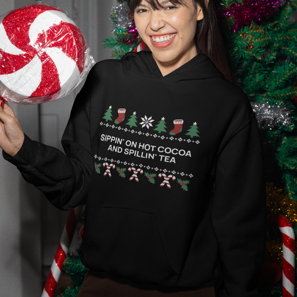 Gen Z Kerst Hoodie Zwart Sippin’ On Hot Cocoa And Spillin’ Tea
