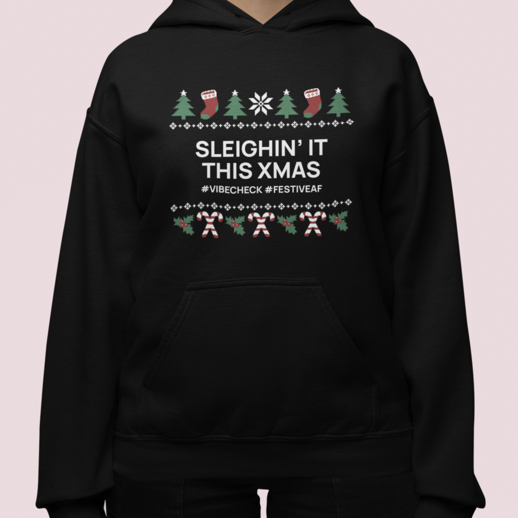 Gen Z Kerst Hoodie Zwart Sleighin’ It This Xmas #Vibecheck #FestiveAF