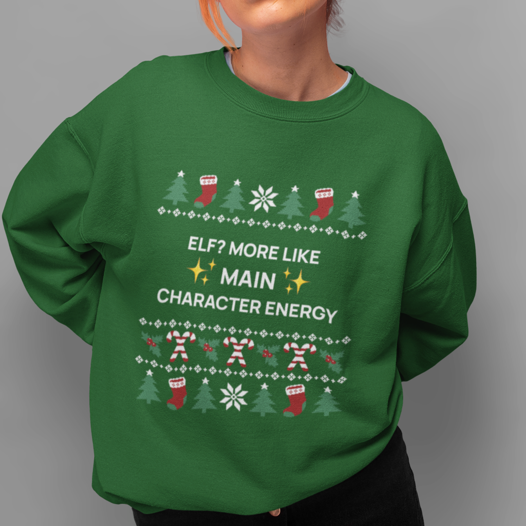 Gen Z Kerst Sweater Groen Elf? More Like Main Character Energy