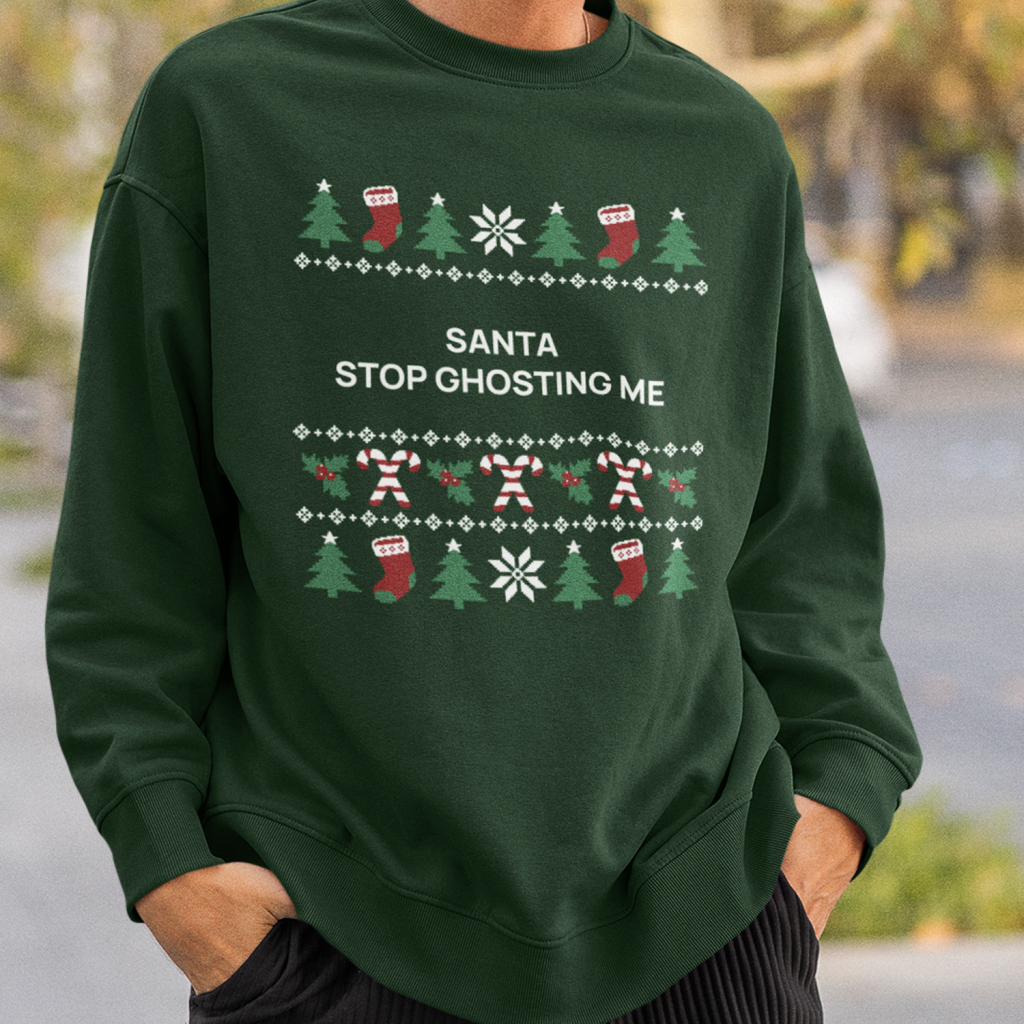 Gen Z Kerst Sweater Groen Santa Stop Ghosting Me