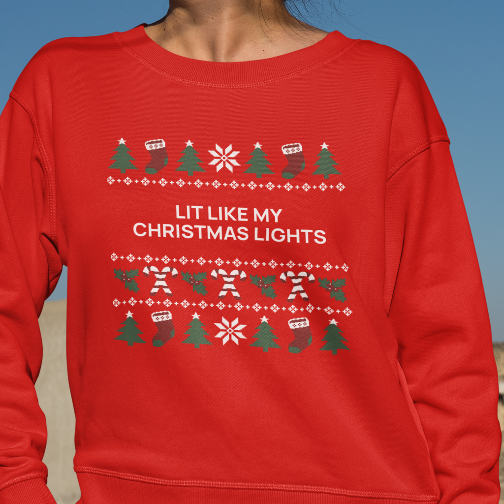 Gen Z Kerst Sweater Rood Lit Like My Christmas Lights
